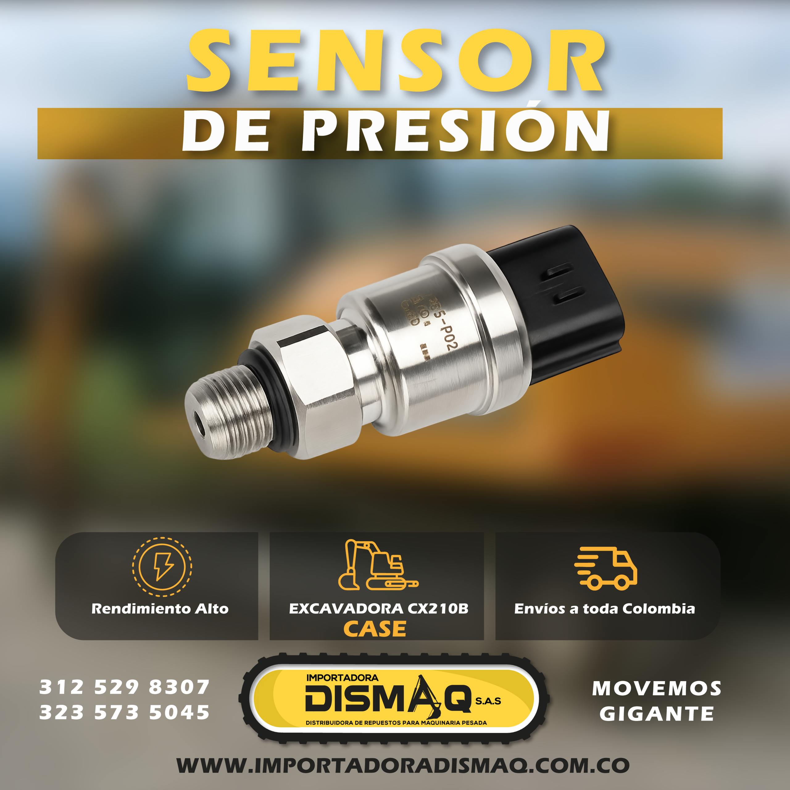 Sensor de Presión KHR10300 | KHR-103-00 | Para Excavadora Case CX210B