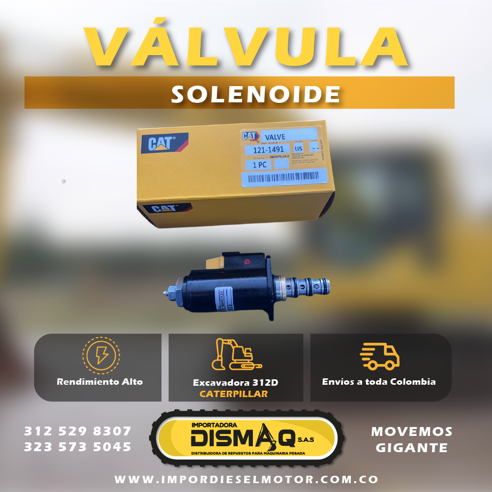 Válvula Solenoide 1211491 | 121-1491 para Excavadora 312D Caterpillar